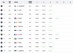 Takamoto Katsuta terminó a tan sólo dos décimas para situar a dos Toyota entre los tres primeros, con su compañero de Yaris Elfyn Evans a tan sólo seis décimas en cuarta posición. Craig Breen, en su primera salida desde que se reincorporó a Hyundai durante el invierno, completó la lista de los cinco primeros a 0,4 segundos.