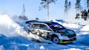 Los sueños de podio de Jari Huttunen duraron poco, ya que el finlandés se estrelló contra un talud de nieve en el TC12 y cayó hasta la 14ª posición de la general. Dos tramos más tarde, su jornada terminó con problemas de motor en su Fabia R5.