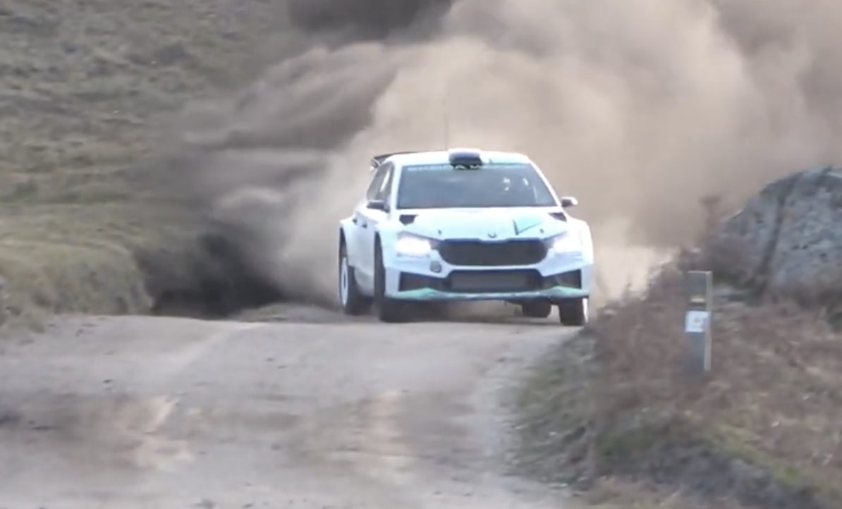 Publicamos los vídeos realizados por parte de Leandro Lemos Motorsport de Gus Greensmith y Andreas Mikkelsen con el Fabia RS Rally2 oficial de Skoda Motorsport 2023 en un tramo de tierra en Portugal.