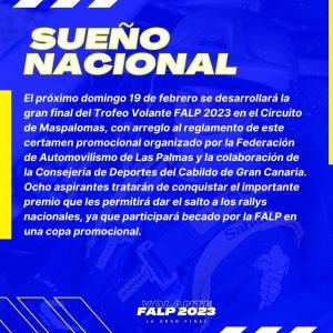 Ocho aspirantes tratarán de conquistar el próximo domingo 19 de febrero en el Circuito de Maspalomas el importante premio que les permitirá dar el salto a los rallys nacionales, ya que participará becado por la FALP en una copa promocional.