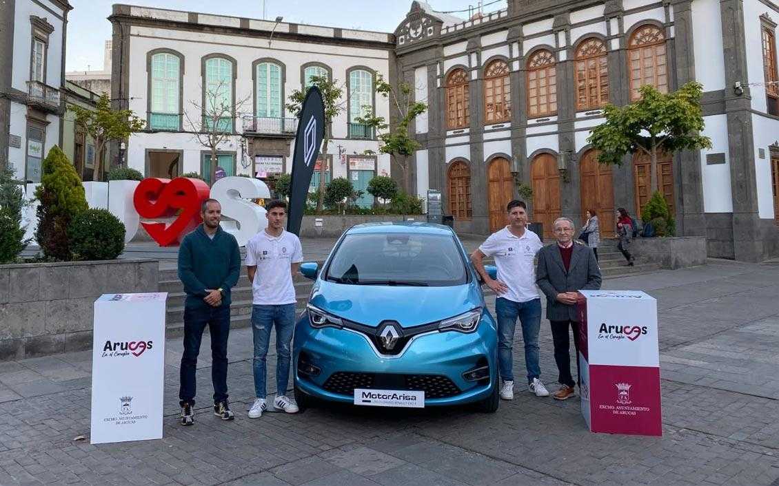 Con la presencia del Presidente de la Federación de Automovilismo de Las Palmas, Miguel Ángel Domínguez, y del concejal de deportes del ayuntamiento de Arucas, José María González, se desveló el coche, que será el nuevo Renault Zoe Electric.