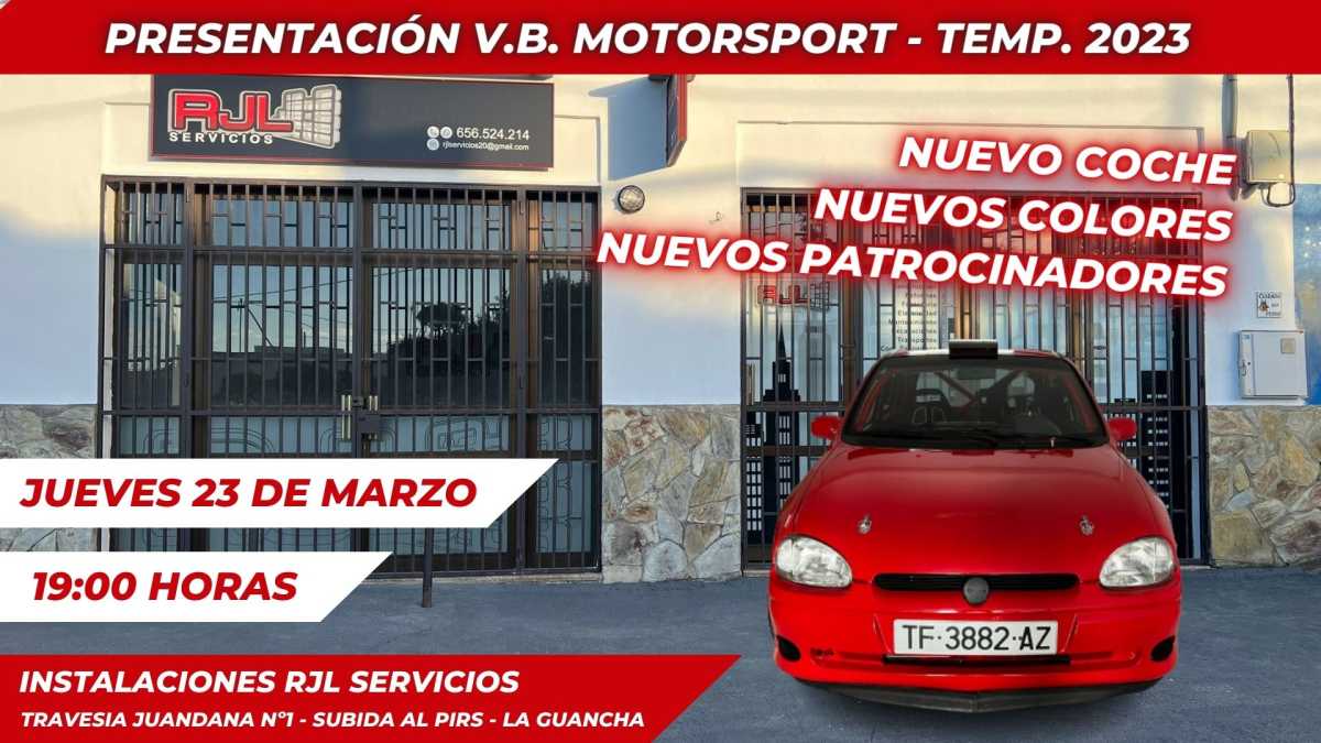 El equipo tinerfeño V.B.Motorsport invita a los aficionados a su presentación de la temporada 2023, donde se desvelará el nuevo vehículo con el que competirán, su nuevos colores y nuevos patrocinadores.