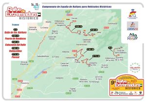 Hay pequeños cambios en el esquema del rallye. El viernes, se disputará el corto tramo de Guijo, celebrándose la salida protocolaria a las 19.30h. tras la cual los equipos se dirigirán hacia el parque cerrado de Plasencia. A primera hora del sábado, los participantes afrontaran dos bucles y ocho tramos en total, por la mañana doble pasada a “Puerto de Honduras”, uno de los clásicos y a “Cabezuela del Valle”. La jornada de tarde, tendrá también cuatro tramos, cronometrados, “Valdastilla” y el mítico “Piornal” para finalizar el recorrido y llegar de nuevo a Jarandilla.