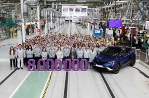La unidad ocho millones de la actual Factoría de Valladolid ha salido esta mañana de la línea de producción. Se trata de un Renault CAPTUR E-Tech engineered, full hybrid E-Tech full hybrid 105 KW(145CV) bitono, color azul rayo con techo negro. Se trata de una nueva versión con personalidad única, que se expresa a través de la calandra y del faldón trasero negro brillante que veremos circular por las carreteras de nuestro país y que tendrá como destino un cliente español.