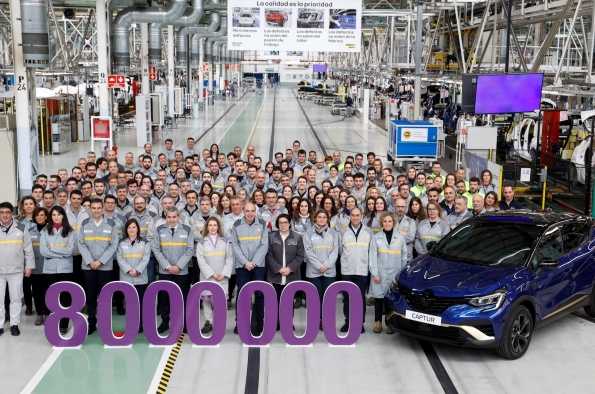 a Factoría de Renault en Valladolid ha fabricado hoy el vehículo 8 millones desde su inauguración en 1972. La emblemática unidad corresponde a un Renault CAPTUR versión E-Tech engineered, de color azul rayo con techo negro y destino a un cliente español. Josep María Recasens -Chief Strategy Officer Renault Group y presidente director general de Renault España y Portugal- y Thierry Charvet -EVP Group Industry and Quality- no quisieron perderse la salida del emblemático vehículo y participaron en la foto que inmortalizó el momento, junto con empleados y los directores de la fábrica y del Polo Industrial Vehículo Iberia.