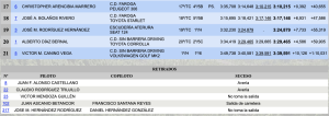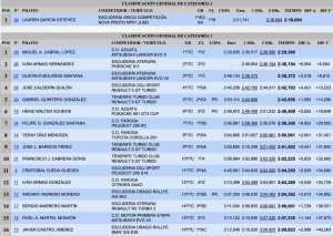 Las diez primeras plazas las cerraba Yeray Díaz (Toyota Corolla 20v), octavo; José Luis Barrios (Renault 5 GT Turbo) y Francisco J. Cabrera (Renault 5 GT Turbo).