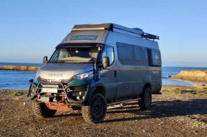 Para abrazar la nueva aventura, su fiel compañera de viaje ha adoptado un nuevo aspecto y ha sido personalizada como Tigrotto, una edición especial de Daily 4×4 -presentada en el IAA el pasado mes de septiembre de 2022- inspirada en el icónico vehículo producido de 1957 a 1972 por OM-Officine Meccaniche, una de las marcas históricas de IVECO, en la planta de Brescia.