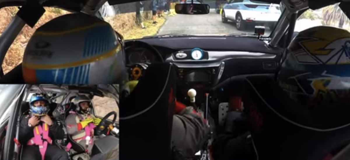Cámara interior de Antonio Afonso – Jonay Miranda (Mitsubishi Lancer Evo IX) en el tramo de Valsequillo, segundo del 39º Rally Villa de Santa Brígida.