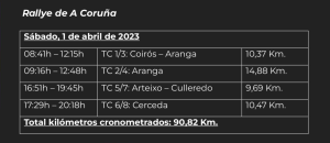 La prueba herculina arrancará el viernes al mediodía con la disputa del tramo de pruebas o shakedown, en el que los equipos tendrán la oportunidad de adaptar sus vehículos a los tramos por los que discurrirá en la jornada del sábado la carrera. Tras el shakedown, los equipos se desplazarán a la Plaza de María Pita que vivirá nuevamente el arranque de la temporada de rallies en Galicia.