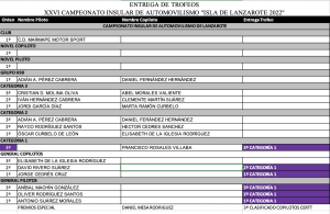 Pocas horas después de finalizar el VII Rallye Villa de Teguise, primera cita de la temporada 2023 en la isla de Lanzarote, la Federación Interinsular de Automovilismo de Las Palmas entregará los trofeos correspondientes al campeonato insular del pasado año. El acto se desarrollará en el salón de celebraciones del Complejo Agrotecnológico de Teguise, a partir de las 11 horas.