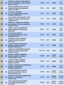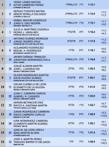 Séptima plaza para Javier Cañada-Jonathan Hernández (Opel Corsa Rally4), seguidos de Josué Alemán y José L. Luzardo (Renault Megane Coupé), ocupando la novena plaza Oliver Rodríguez y David Rivero (Porsche 997 GT3 Cup Rallye), cerrando las diez primeras plazas Óscar Curbelo y Elizabeth de La Iglesia (Renault Megane Coupé).