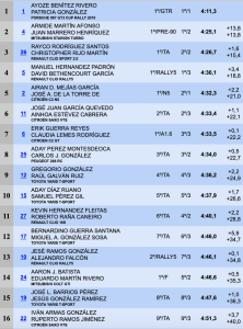 Cuartos son Manolo Hernández-David Bethencourt (Renault Clio Rally5), a 18,8 de la cabeza, a 3.4 del tercer lugar y superando a los tinerfeños Airán David Mejías-José Agustín de la Torres (Citroën C3 N5), quintos, en 2.2
