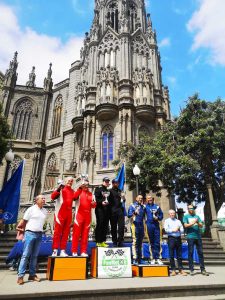 La prueba concluyó con la entrega de trofeos en el Parque de la Paz, donde cada equipo recibió su galardón correspondiente y una placa de reconocimiento para las principales empresas colaboradoras como Diasan, Mahepa, Be Next Automoción y La Palmita Sport, además del propio Ayuntamiento. Una ceremonia a la que asistió el concejal de Deportes de Arucas, José María González, acompañado por el vicepresidente de Fan Motor, Benedicto Pérez y el presidente en funciones de la FALP, Miguel Ángel Domínguez.