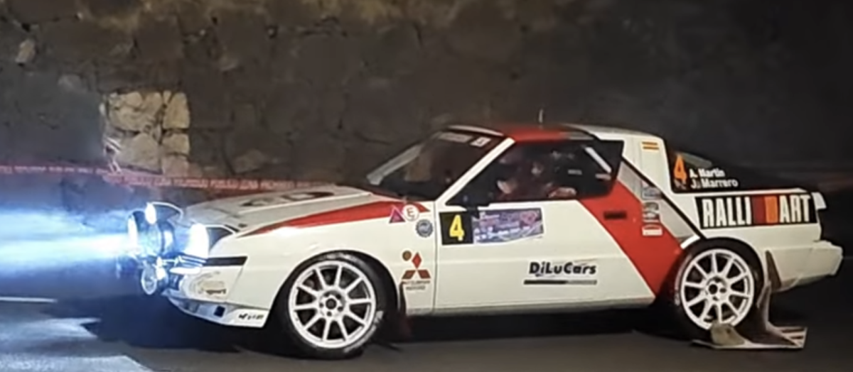 Los grancanarios Armide Martín y Juan Marrero (Mitsubishi Starion Turbo) comenzaron el Rallysprint de Arucas 2023 en segunda posición en el primer tramo nocturno del viernes, pero en el segunda sufrían un trompo que les retrasó.