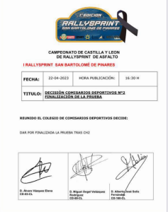 La cita se estrenaba en el calendario el I Rallysprint San Bartolomé de Pinares con una inscripción de 39 pilotos en una jornada organizada sobre un recorrido de 10,95 kilómetros sobre la AV-503, conocida a la perfección por todos por ser parte del trazado de la clásica Subida Puerto del Boquerón. Cuatro tramos –dos en sentido ascendente y dos en sentido descendente– con San Bartolomé de Pinares y el alto del Puerto del Boquerón como protagonistas de la prueba. Arrancó pasadas las 12,30 horas con la celebración del TC1 (San Bartolomé – Puerto del Boquerón), quedando suspendida tras el accidente, ocurrido durante el TC2 (Puerto del Boquerón – San Bartolomé).