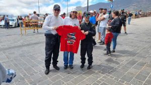 Yulieth Hidalgo, cariñosamente conocida como ‘la Chica de la bandera’, recibió el cariño de Santi y Dani Santana, padre e hijo, que reconocen así sus múltiples muestras de apoyo.