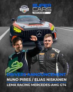 Elias Niskanen y Nuno Pires unen esfuerzos este año en el Supercars Endurance, compartiendo un Mercedes-AMG GT4 inscrito por Lema Racing. El componente internacional de la competición promovida por Race Ready es muy evidente, con competidores confirmados del Reino Unido, España, Holanda, a los que se unen ahora un piloto finlandés y un portugués en el segundo coche alemán, hasta ahora confirmado, operado por una estructura eslovena.