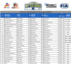 Lista de inscritos del Rally Islas Canarias 2023