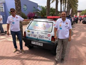 Luis y Pedro, dos jóvenes de Lanzarote atraídos por el espíritu de aventura, los valores deportivos y, sobre todo, humanos que esta carrera propone, unido para afrontar el reto de llegar con el Fiat Panda 4X4 y así poder cumplir el sueño de representar a nuestro archipiélago de una forma diferente y solidaria.