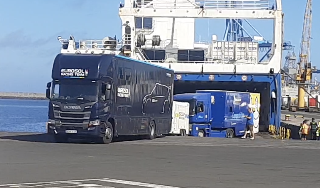 Publicamos el vídeo de la llegada de los camiones de los equipos del Rally Islas Canarias al muelle de Las Palmas de Gran Canaria.