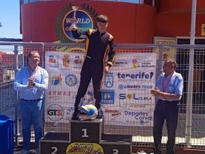 El joven piloto herreño Aimar Fariña logra el primer puesto en la primera carrera del Campeonato de Canarias y primera de Tenerife de Karting SENIOR, celebrada este pasado fin de semana en el Karting Club de Tenerife, en el Parque la Reina.