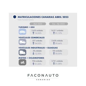 A nivel global, volvemos a contar con disponibilidad de producto y hay stock en prácticamente todas las marcas, lo que se traduce en una tendencia positiva en el mercado de las dos ruedas y de los vehículos comerciales. Las motos crecen el pasado mes de abril un 31,3% con 956 matriculaciones. Por lo que respecta a los vehículos comerciales, crecen un 24% con 537 vehículos matriculados. Y en el mercado de las guaguas y vehículos industriales, las matriculaciones caen un 12,5% con 28 unidades.