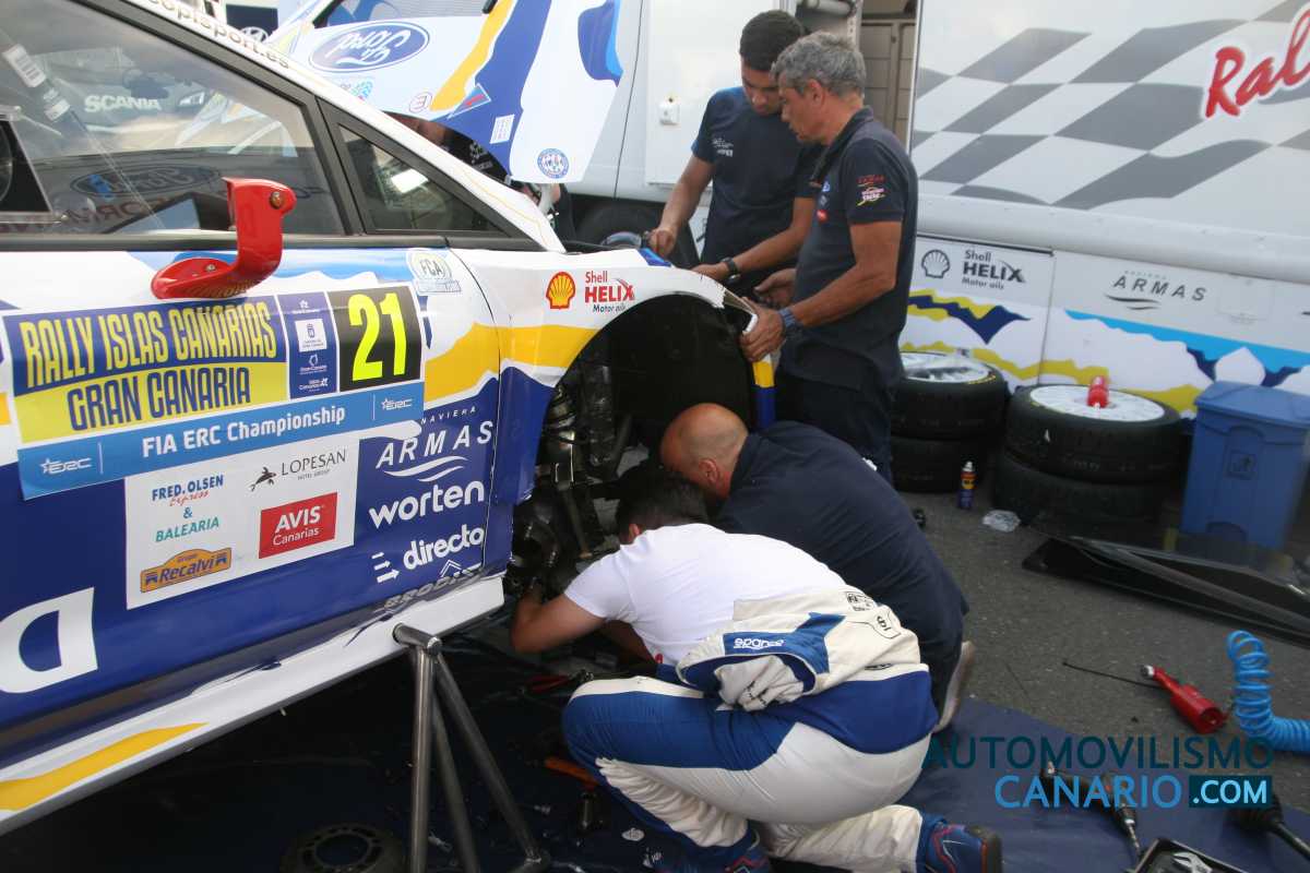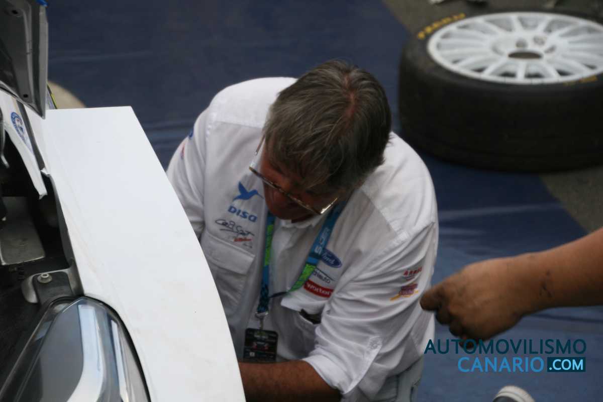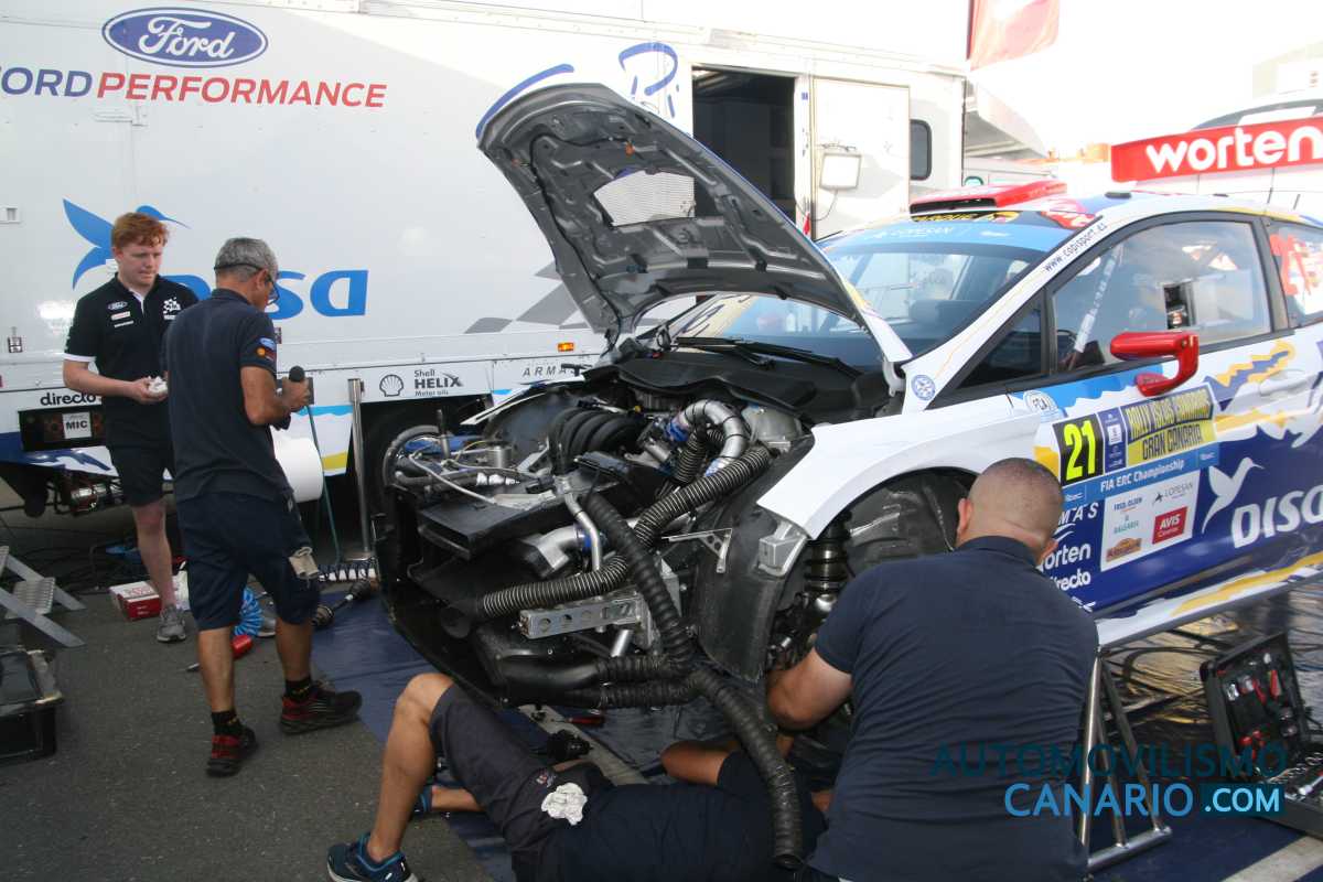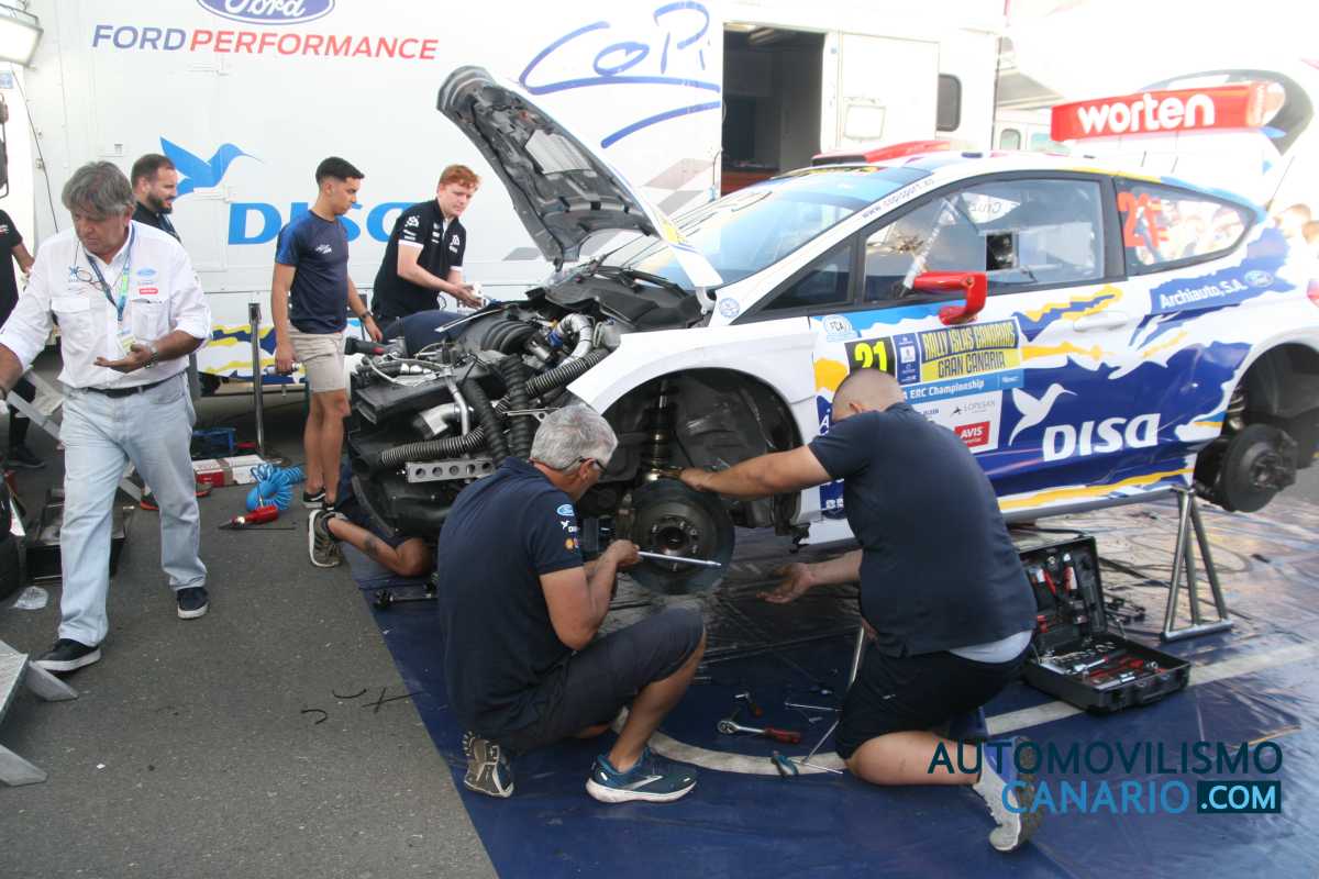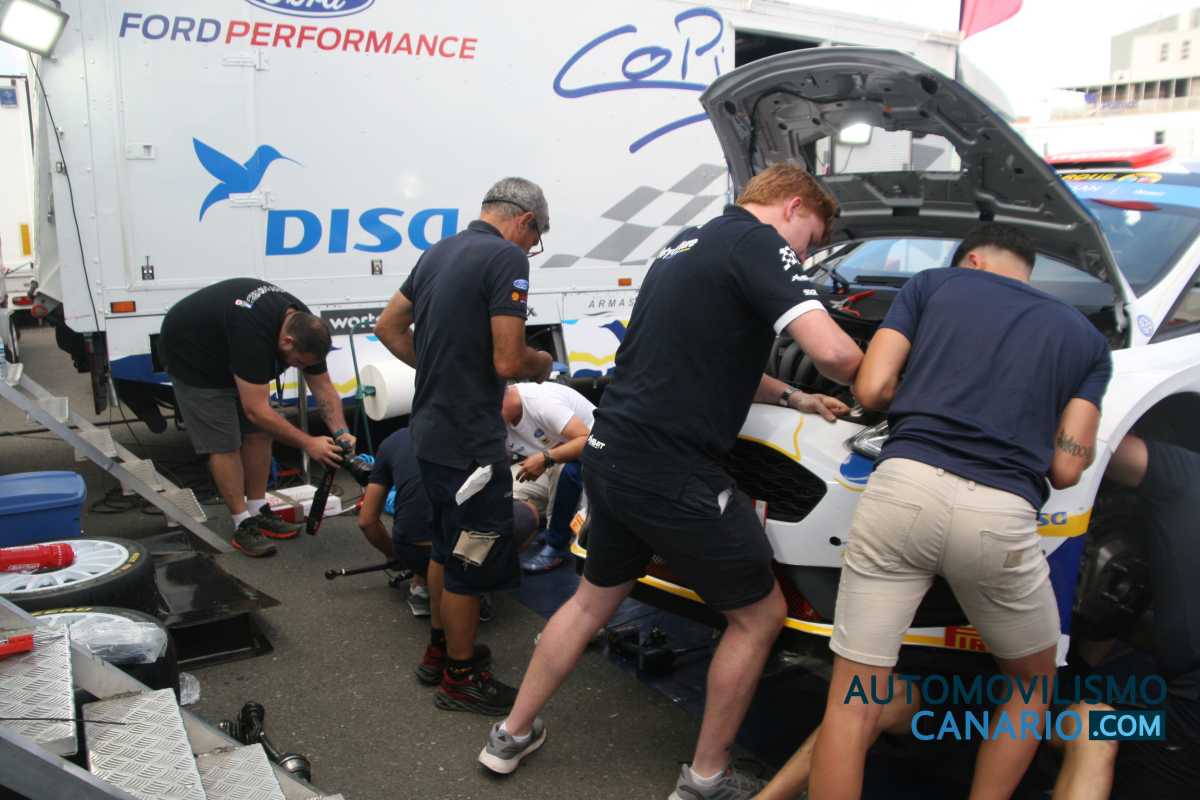 Una vez en la zona de asistencia los mecánicos de Copi Sport demostraron el nivelazo que tiene la estructura tinerfeña tanto dentro como fuera del coche. El equipo capitaneado por Fernando Capdevila, con mecánicos de referencia como Berto Rodríguez y Toño Rodríguez, entre otros, lograron dejar lista para competir la montura construida en M-Sport.