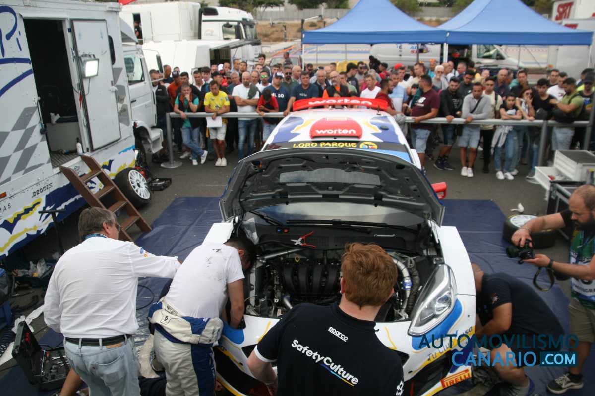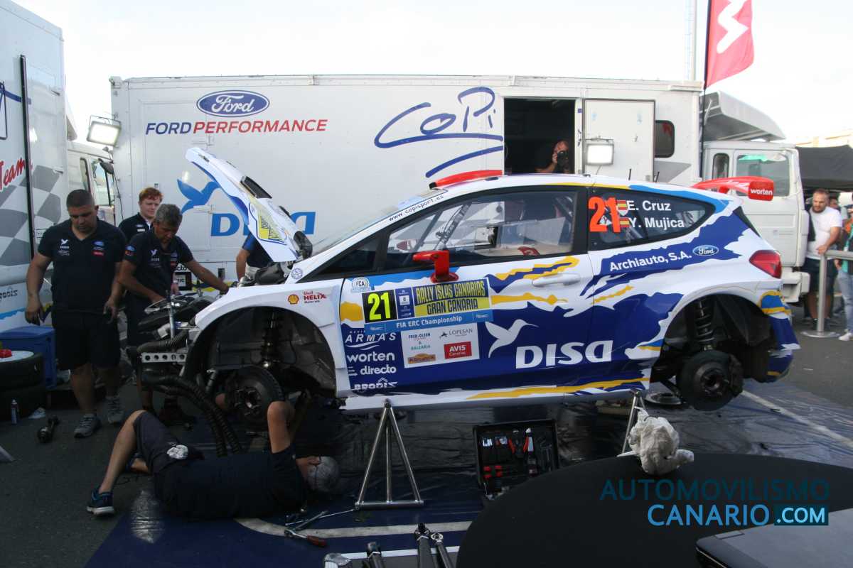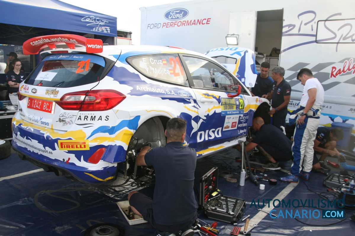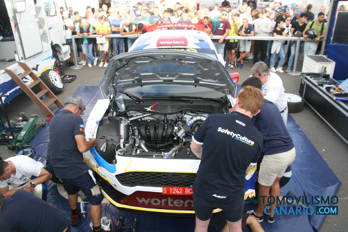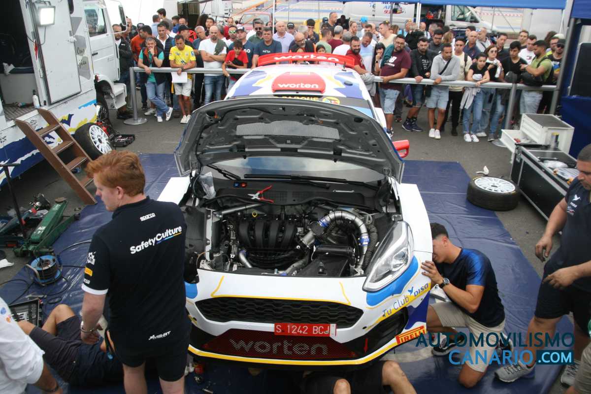 Una vez en la zona de asistencia los mecánicos de Copi Sport demostraron el nivelazo que tiene la estructura tinerfeña tanto dentro como fuera del coche. El equipo capitaneado por Fernando Capdevila, con mecánicos de referencia como Berto Rodríguez y Toño Rodríguez, entre otros, lograron dejar lista para competir la montura construida en M-Sport.