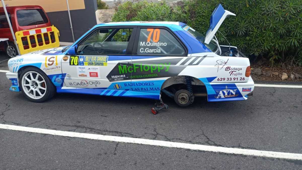 Los grancanarios Miguel Quintino y Carlos García (BMW M3) no pudieron terminar el Rally Islas Canarias al perder una rueda.