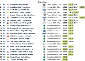 Ott Tänak encabezó brevemente la clasificación tras marcar el tiempo de referencia en la primera pasada por el tramo. Sin embargo, el piloto del M-Sport Ford Puma fue relegado por Evans en la segunda pasada y terminó la sesión a sólo 0,5 segundos de la tercera posición.