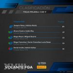 Con Mayo y Camuñas ocupando el podio, que les asienta en las posiciones de honor de la general, Joaquín Pérez conserva el liderato del Volante FGA después de remontar hasta la cuarta plaza y minimizar daños. Daniel Roca terminaba quinto en su debut en este certamen, mientras que Diego Pérez cerraba la clasificación.