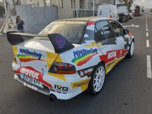 El rotulista Acorán Navarro ha desvelado la rotulación que lucirá el Mitsubishi Lancer Evo VIII con el que competirán los grancanarios Javier Ramírez y Minerva Llarena.
