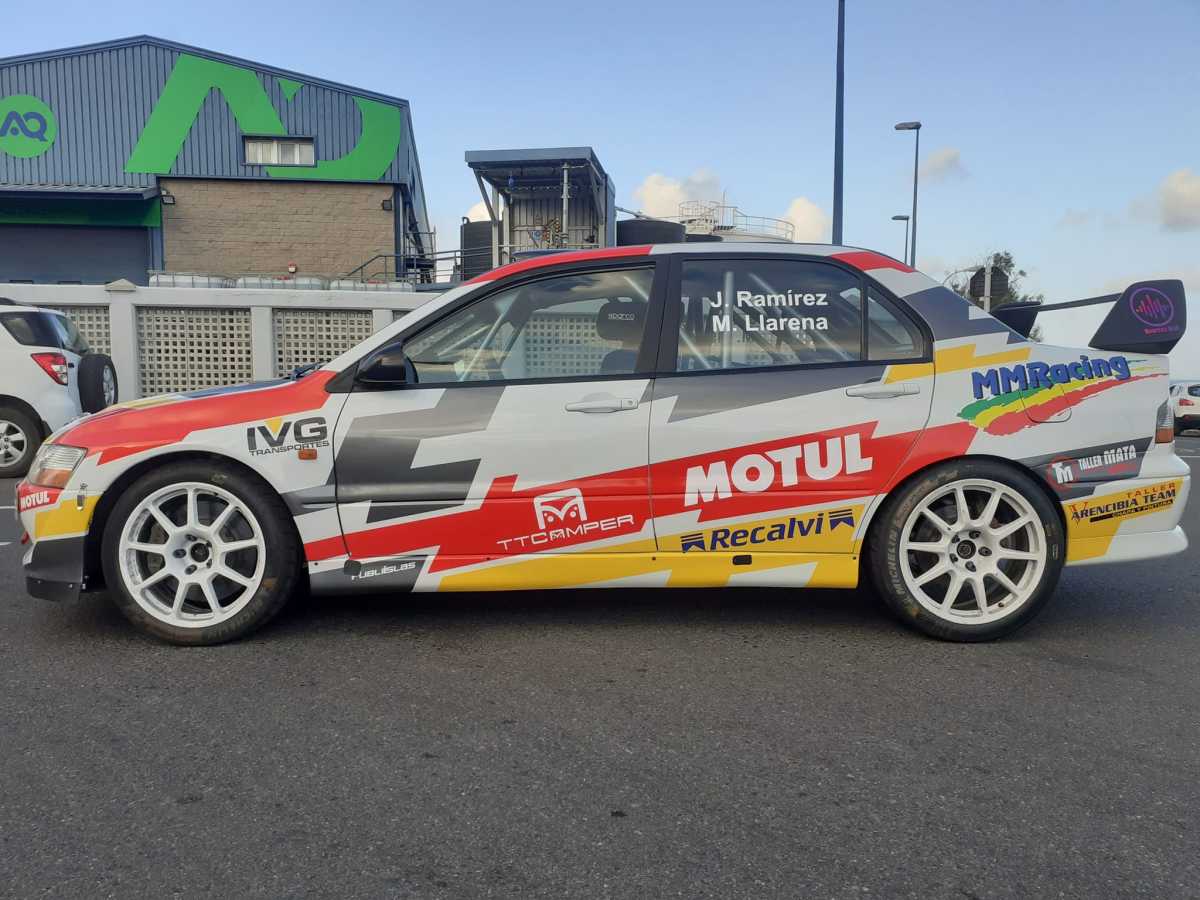 El rotulista Acorán Navarro ha desvelado la rotulación que lucirá el Mitsubishi Lancer Evo VIII con el que competirán los grancanarios Javier Ramírez y Minerva Llarena.