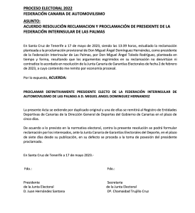 Con un retraso inverosímil e inexplicable en lo que llevamos de democracia en las elecciones del automovilismo canario, este miércoles la Junta Electoral ha proclamado definitivamente como presidente electo de la Federación de Automovilismo de Las Palmas a Miguel Ángel Domínguez Hernández, tras resolver la reclamación presentada por el otro candidato. Han pasado más de tres meses para llegar a este punto.