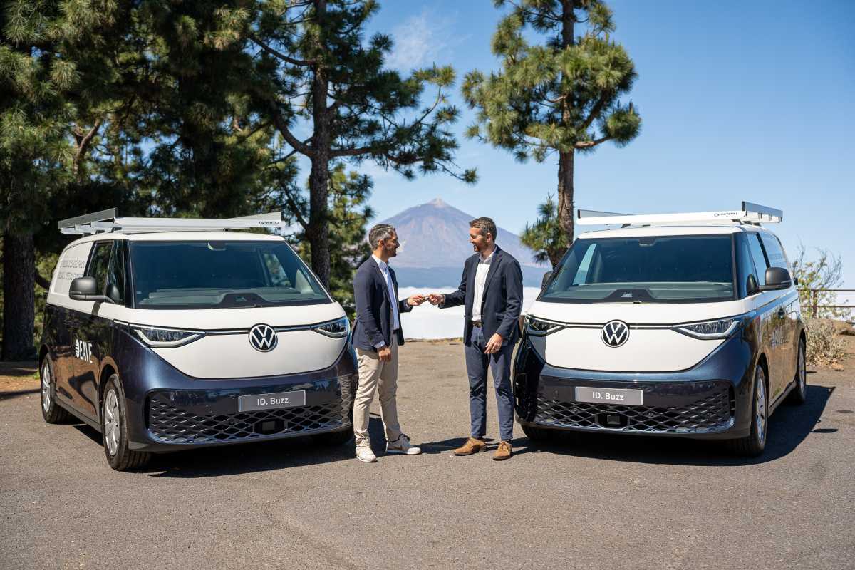El ID. Buzz y el ID. Buzz Cargo son los nuevos buques insignia de Volkswagen Comerciales con los que EAVE va a recorrer las carreteras de las Islas. Estos vehículos 100% eléctricos cuentan con una autonomía de hasta 414 kilómetros. Con sus 650 kg de carga útil y el mejor radio de giro de su segmento con 11,09 metros no hay reto que se le resista ni las carreteras más estrechas. Además, para la nueva flota de EAVE, las restricciones de acceso a futuras zonas ambientales restringidas para vehículos con motor de combustión tampoco será un problema.
