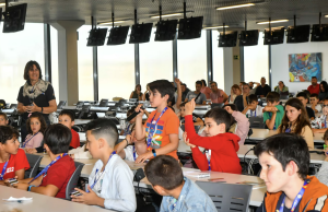 La actividad «siente periodista» tuvo gran acogida por los centros escolares de Alcañiz y alrededores, el aforo limitado se llenó rápidamente y cien niños de 7 a 12 años han podido ser los protagonistas del día en las instalaciones de Motorland Aragón.