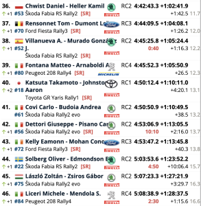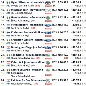 Aunque se quedó a 1 minuto 22.3 segundos de su compatriota Lappi en la meta, el alto ritmo de desgaste le permitió terminar con una considerable ventaja de 3 minutos 25.2 segundos sobre su compañero de equipo Elfyn Evans. Evans tuvo problemas para encontrar el ritmo con su GR Yaris y bajó unos tres minutos el sábado cuando el radiador del coche sufrió daños en un cruce de agua.