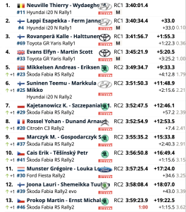 Aunque se quedó a 1 minuto 22.3 segundos de su compatriota Lappi en la meta, el alto ritmo de desgaste le permitió terminar con una considerable ventaja de 3 minutos 25.2 segundos sobre su compañero de equipo Elfyn Evans. Evans tuvo problemas para encontrar el ritmo con su GR Yaris y bajó unos tres minutos el sábado cuando el radiador del coche sufrió daños en un cruce de agua.