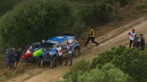 Mikkelsen, que iniciaba el tramo 31 segundos por detrás de Fourmaux, parecía destinado a pilotar su Škoda Fabia hasta la segunda posición de la general, su mejor resultado en el WRC2 en Cerdeña después de haberse retirado allí las dos temporadas anteriores.