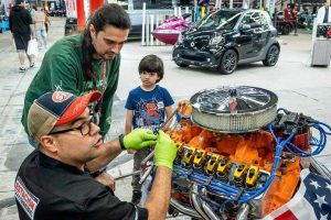 En esa misma nave, lo que más está llamando la atención del público, al margen de la espectacular muestra dedicada a la Fórmula 1 y los coches de rallies del Team Recalvi, es el stand de Estación Racing. Allí, sus técnicos están montando varios motores en directo; entre ellos el de un Chevrolet Camaro 5.7 o el de un Escarabajo Volkswagen. Justo al lado, los asistentes a GaliExpo MotorShow pueden ver como se vinila un vehículo; un minucioso y curioso trabajo que realizan los miembros de Elipse Gráfica.