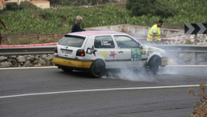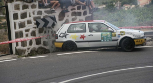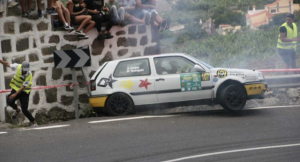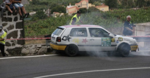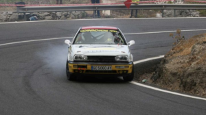 La pasada Subida de Arucas vio como los grancanarios Santiago Canino y José Luis Rodríguez perdían el control de su Volkswagen Golf GTI en la última curva antes de meta.