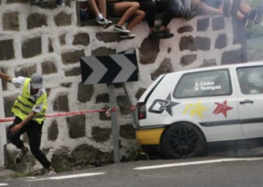 El coche entró de culo en esa zona, sin control alguno, y se fue directamente hacia un muro donde se encontraba uno de los comisarios de la prueba, que gracias a que pudo correr y salir de allí, ya que de no haber sido así estaríamos contando otra noticia.
