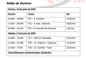 Como es habitual en la cita ourensana, se esperan altas temperaturas para el fin de semana, por lo que el trabajo de los equipos en la gestión de neumáticos puede ser una de las claves. El recorrido de esta edición es similar al de la temporada pasada, aunque con un trazado renovado en la especial de Toén, que será la más larga de la cita y la que puede decidir el resultado.
