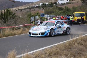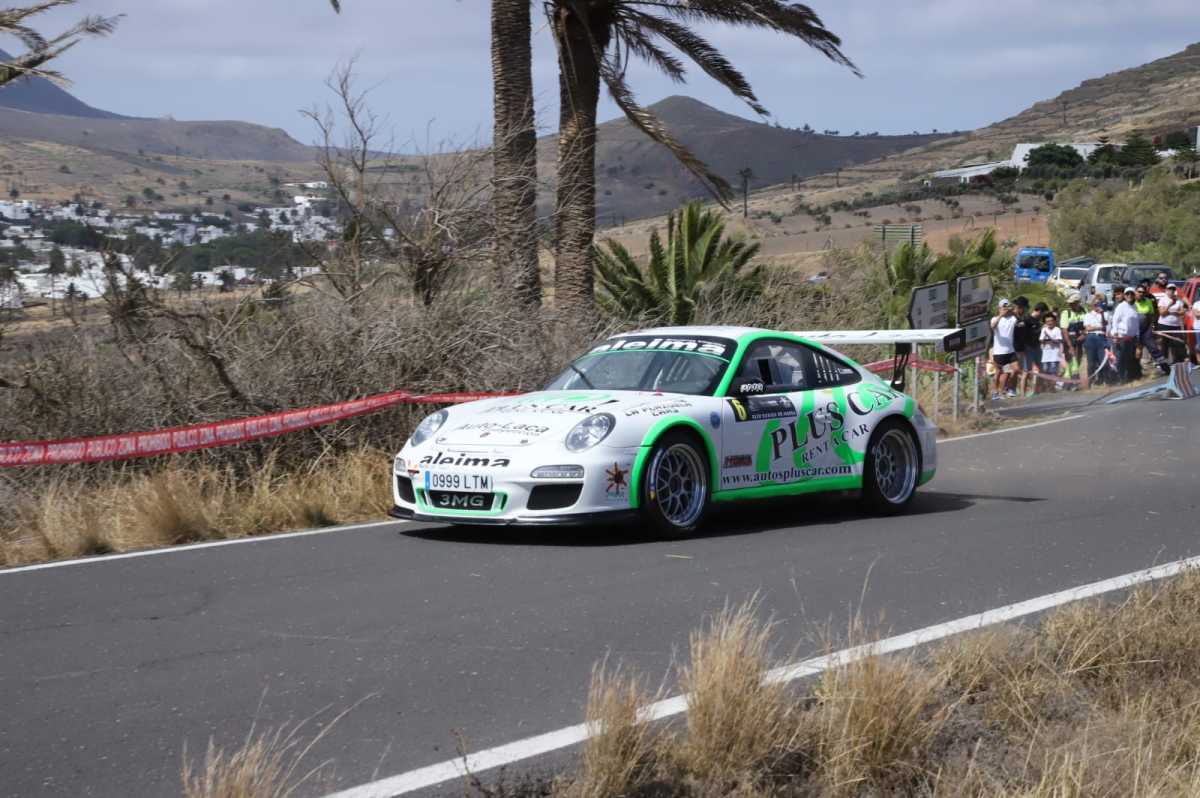 Yeray Lemes ya ostentaba el mejor crono con Porsche (4.26.545) en la rampa lanzaroteña con salida en Tabayesco y meta en el Mirador de Haría, dejando claro desde un primer momento que no tenía pensado dejar opciones a sus rivales y firmó los mejores tiempos de la jornada, prácticamente calcando un 4:29,6 en las dos mangas oficiales.