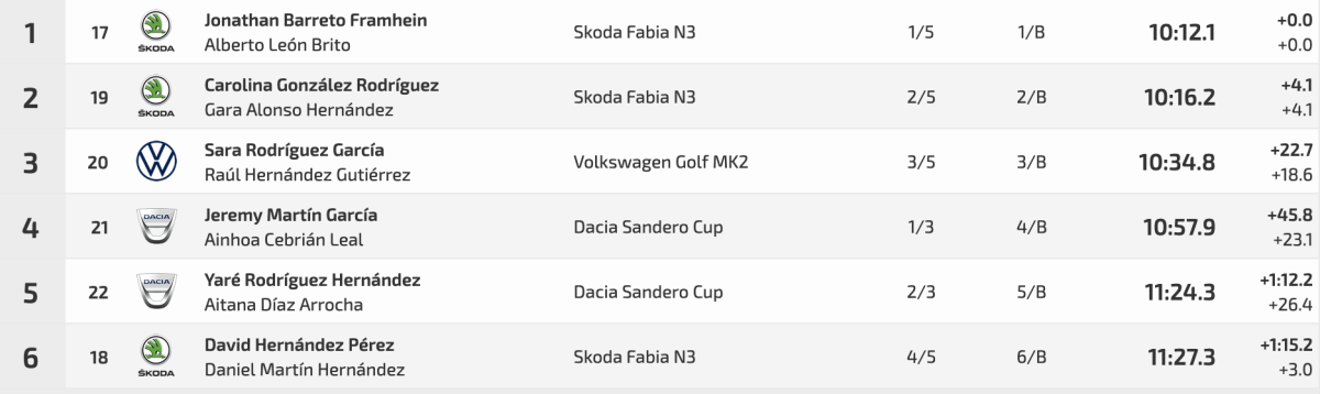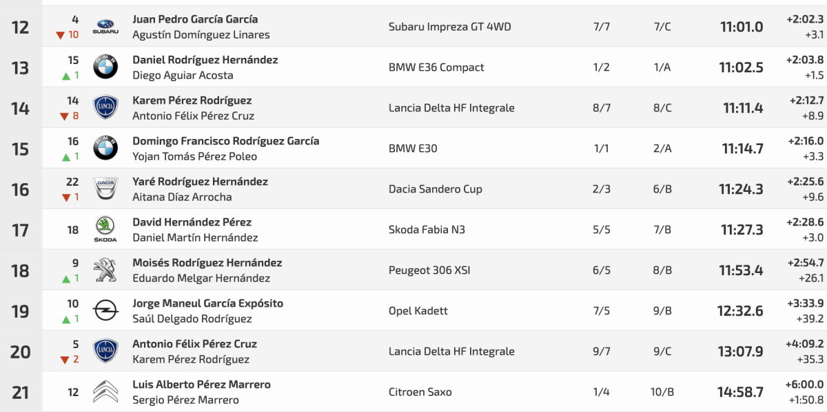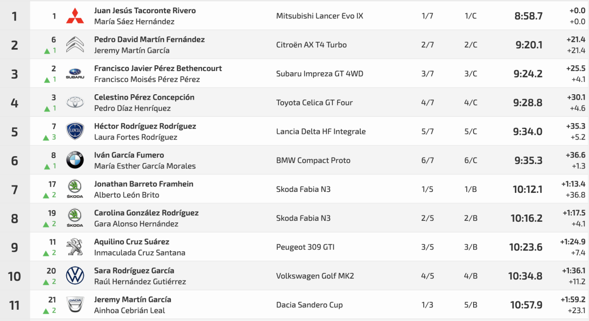 Terceros fueron Francisco Javier Pérez y Francisco Moisés Pérez (Subaru Impreza GT 4WD) con un 9:24.2, a 25.5 de la cabeza y a 4.1 del segundo puesto.