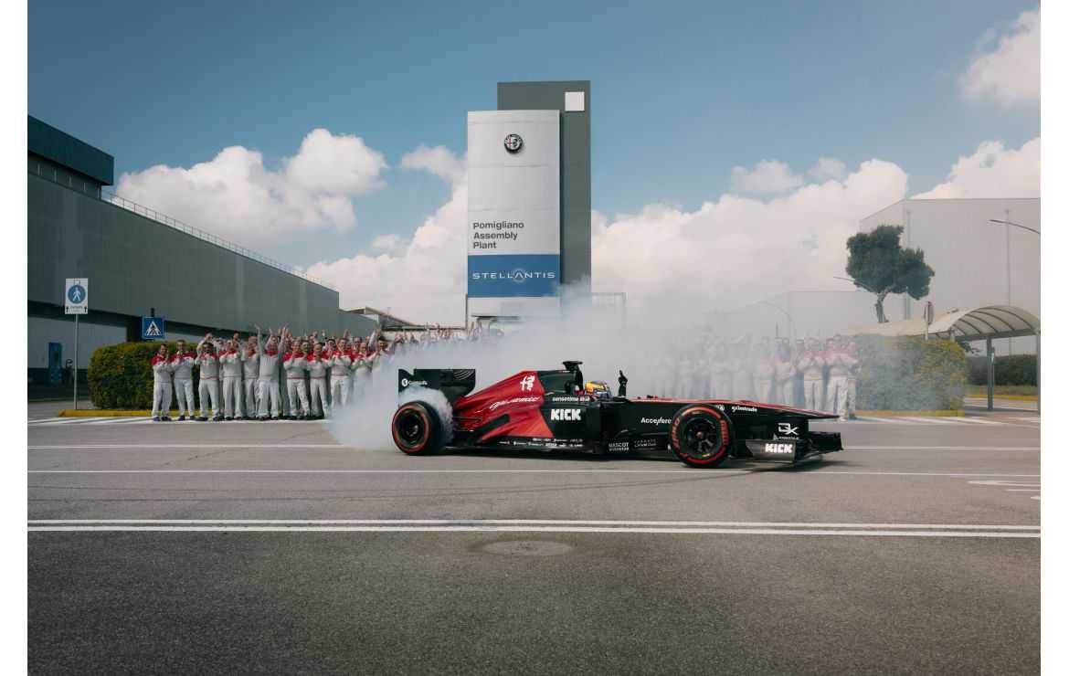 La marca le pidió al piloto chino Zhou Guanyu que demostrara sus habilidades de conducción en una pista no incluida en los 23 lugares de este año. El conductor se subió a bordo de su monoplaza en la planta de Cassino, donde el Giulia y el Stelvio cobran vida. Los empleados de la planta le dieron una cálida bienvenida e hicieron las tradicionales fotos, hasta que salió de las puertas de la planta.