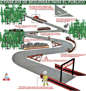 • Desplazarse por el recorrido con la carrera ya iniciada supone un grave peligro. Los vehículos compiten al límite y en cualquier momento puede producirse una salida de carretera, ya que esperan encontrarse con la carretera totalmente despejada.