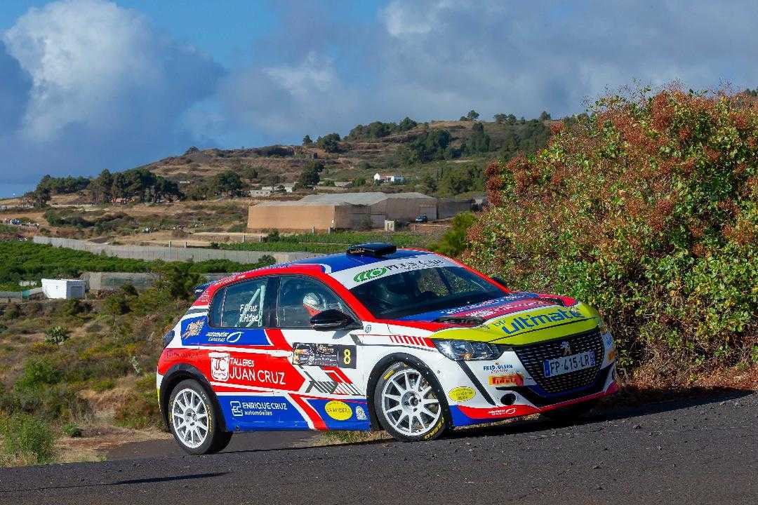 Tratando de recuperar la posición de podio que perdió con su abandono en La Palma, Sergio Fuentes y Ariday Bonilla repiten con el Citroën C3 Rally2. Lo hacen en una prueba en la que ya se subieron al cajón (regional) en noviembre del año pasado. Esa plaza de podio provisional es precisamente para Fernando Cruz y Tecorice Hernández –segundo en la general de copilotos–, que con su Peugeot 208 Rally4 también lideran su categoría por delante de Giovanni Fariña, en Adeje de nuevo copilotado por Carolina Fariña.