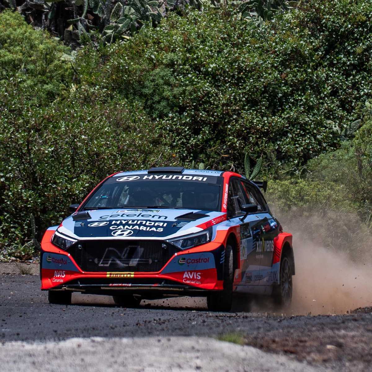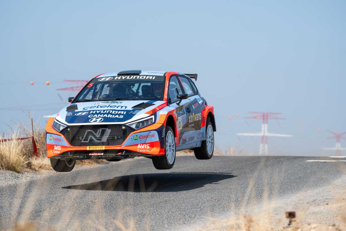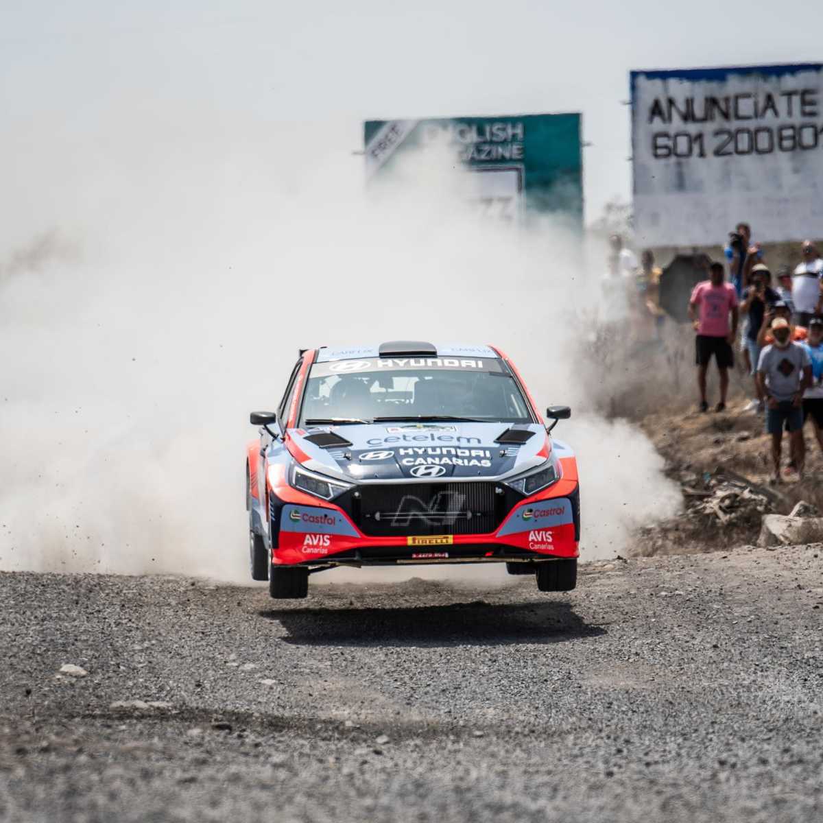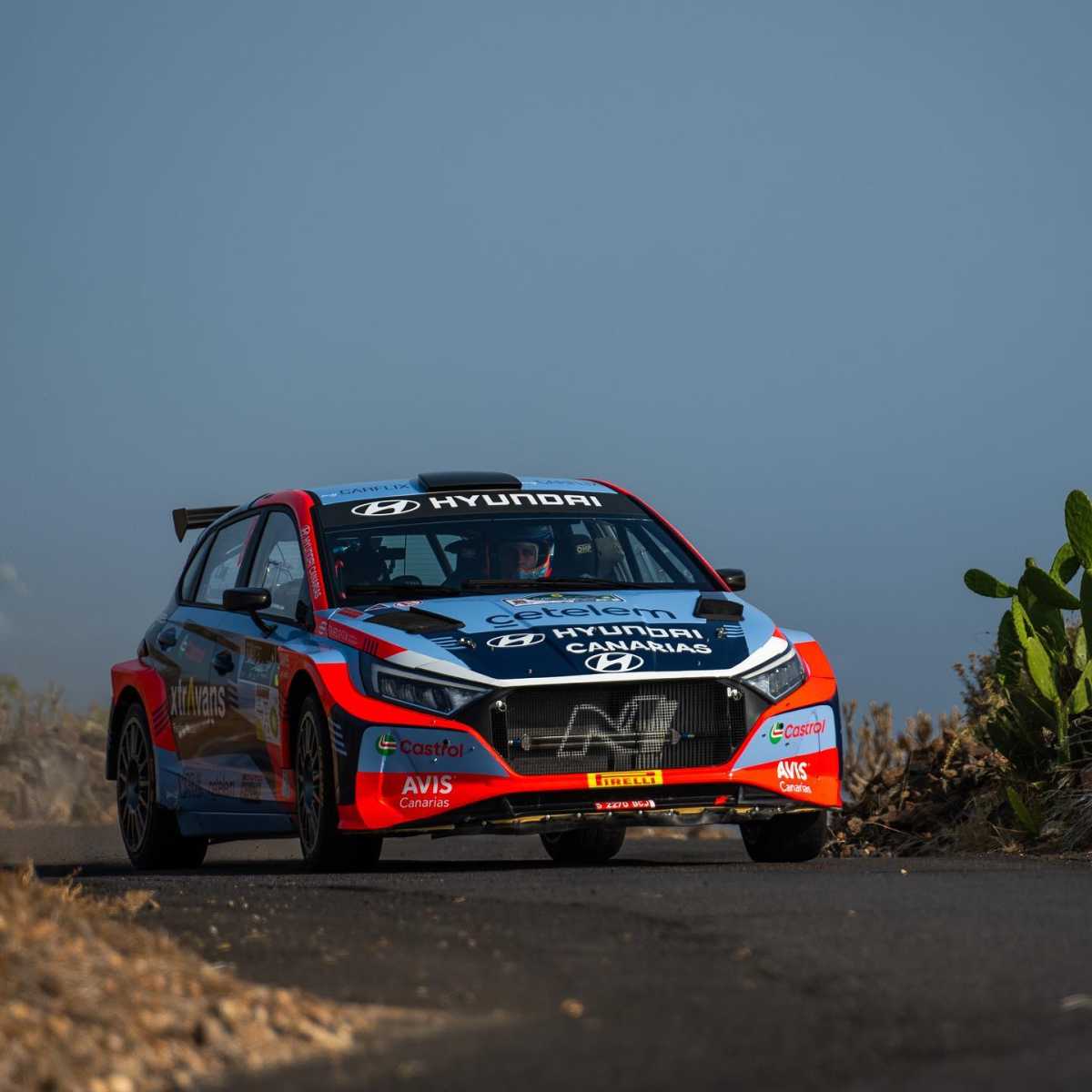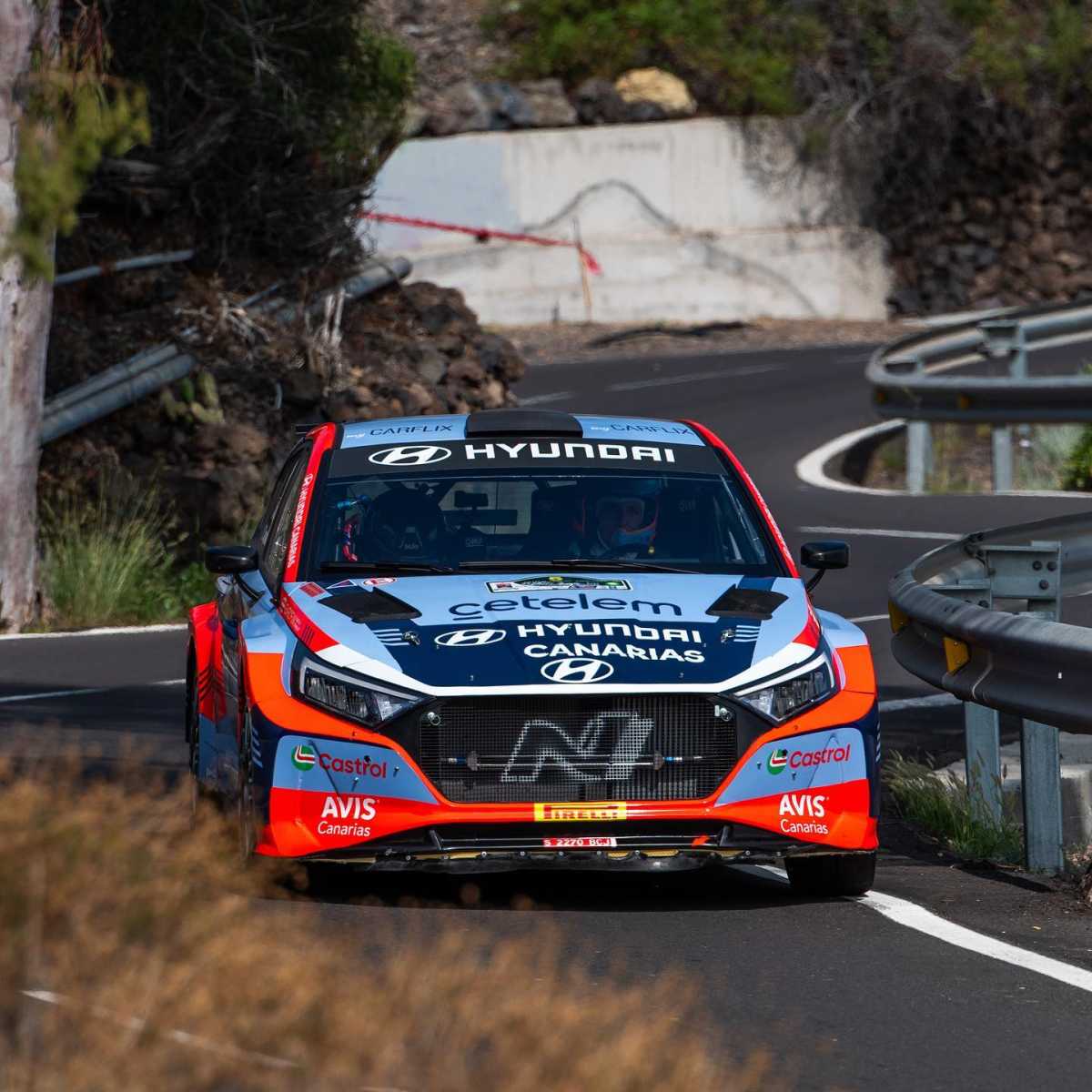 A 5,5 puntos de ellos antes de celebrarse el Rally Villa de Adeje, el objetivo era limar su ventaja y así lo demostraron a lo largo de las dos etapas. El viernes concluyeron la primera etapa y sus seis tramos a nueve segundos y el sábado subieron la apuesta. Nada más arrancar la segunda etapa, en el tramo rey del rally de más de veinte kilómetros, recortaron tres segundos y, a continuación, en el pequeño tramo del Karting Club exprimieron el Hyundai i20 N Rally2 para marcar su primer scratch quedándose a 2,5’’ en la general.