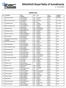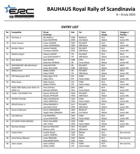 Un total de 48 equipos tomará la partida en el BAUHAUS Royal Rally of Scandinavia, quinta prueba del Campeonato de Europa de Rallys (ERC). Estarán presente 27 Rally2/R5, mientras que en el apartado Junior 16 serán los equipos participantes.